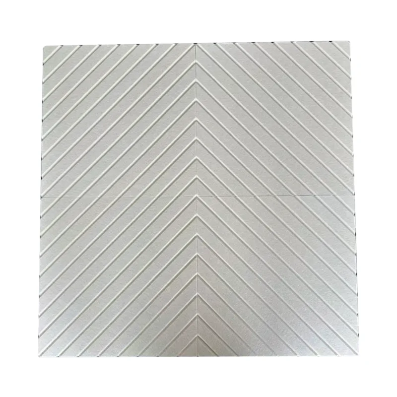 Бежевая акустическая панель из ПЭТ-фетра Soundbetter с V-образными канавками представляет собой звукопоглощающую декоративную панель. В качестве основного материала используется ПЭТ-фетр, на поверхности которого тиснена уникальная текстура с V-образными канавками. Он сохраняет мягкость и приятное для кожи ощущение войлока, обеспечивая при этом эффективное звукопоглощение благодаря научной микропористой структуре. Когда звук попадает на панель, он проникает внутрь панели через иглопробивные поры и поглощается, предотвращая отраженный шум. Бежевый цвет дополняет различные стили оформления, а элементы стрелок придают пространству динамизм, гарантируя, что шумоподавление не поставит под угрозу эстетику.