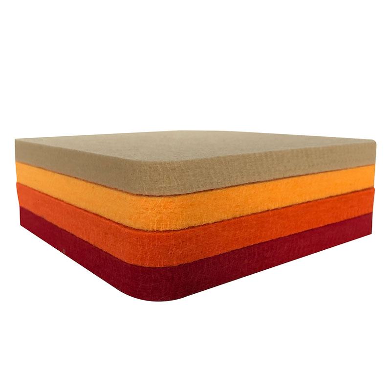 Акустические панели из полиэфирного волокна изготовлены из 100% полиэстера путем иглопробивания. Производственный процесс полностью физический и экологически чистый, без сточных вод, выбросов, отходов. без клея. Пористая природа акустической панели делает ее звукопоглощающей и теплоизоляционной, нетоксичной, неаллергенной, не раздражающей, не содержит формальдегидных связующих и имеет высокий NRC: 0,85.